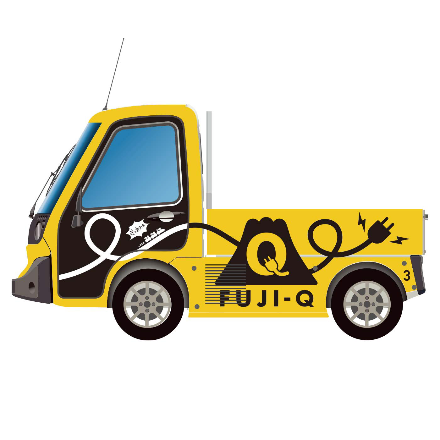 富士急ハイランド園内で活躍する 整備用電気トラックのラッピングデザイン コンセントのコードをコースターのレールに 見立ててた楽しいデザインにしました♪