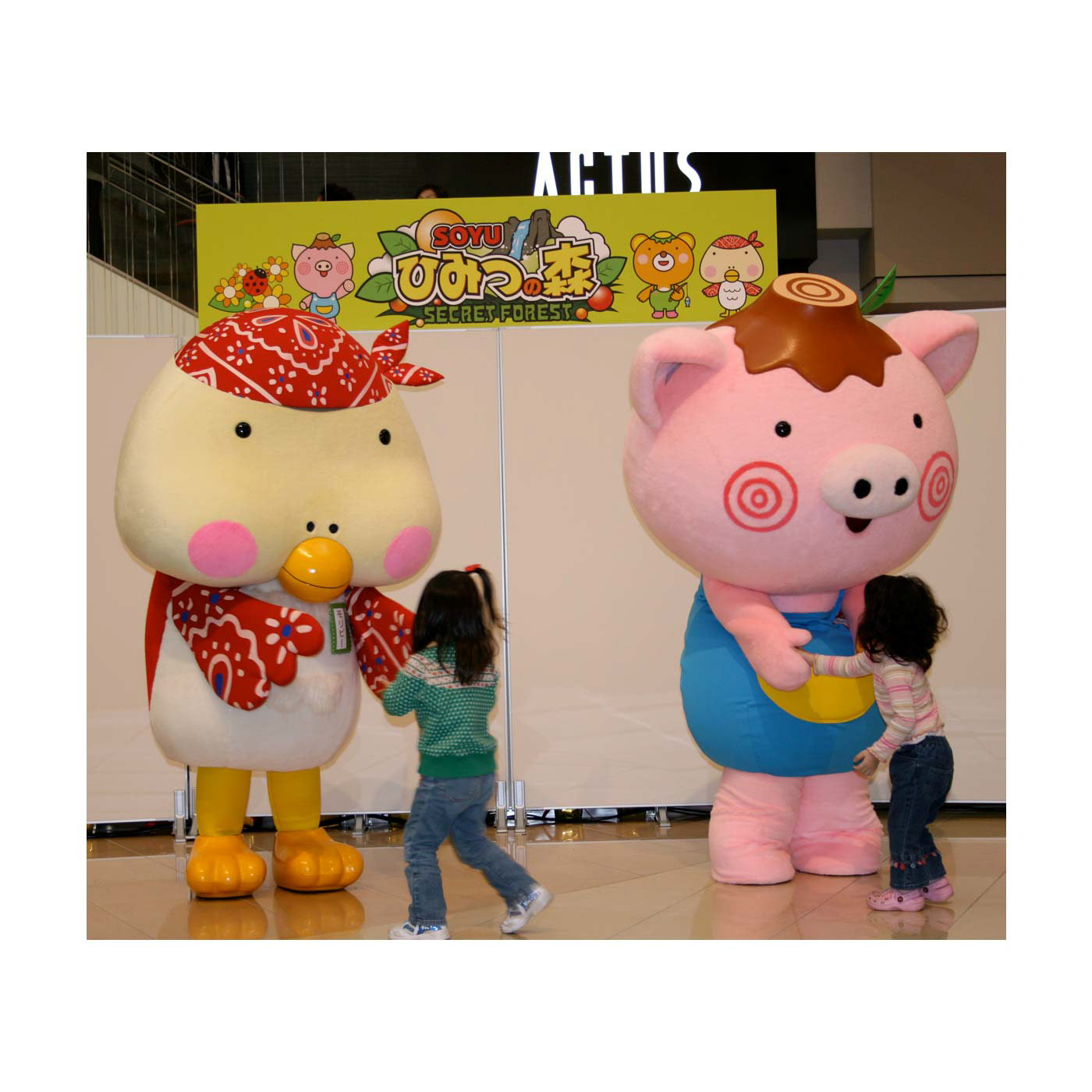 オープンイベントで、子供達と触れ合う「モリピー」&「きりっかぶぅ」